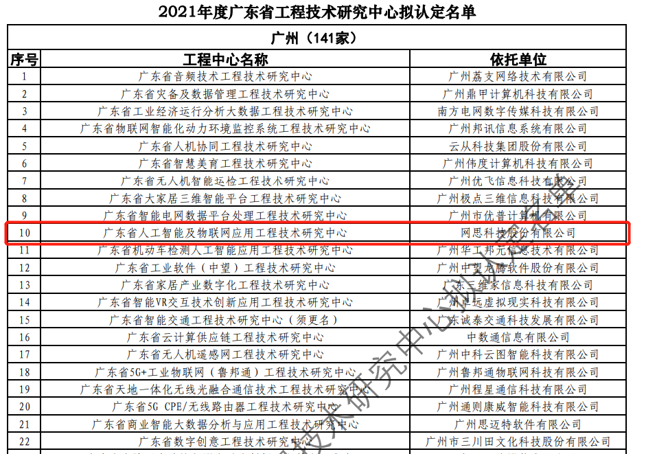 日前,广东省科技厅发布2021年度广东省工程技术研究中心名单。经过层层筛选、专家评审,依托华体会|体育世界杯最新战报网站 建设的“广东省人工智能及物联网应用工程技术研究中心”榜上有名。广东省工程技术研究中心主要依托省内行业、领域具有科技实力的、拥有一定规模以上创新型企业建设,部分依托高校和科研院所组建。工程中心旨在